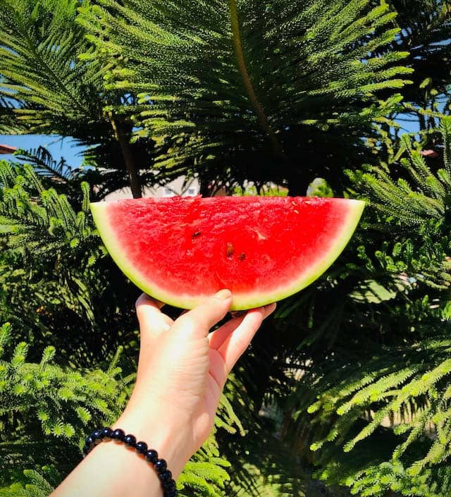 수박은 약 90% 이상의 수분 함량으로 탈수 예방에 도움을 주며 몸의 수분 섭취를 돕고 여름철 수분 섭취에 매우 도움을 주는 과일입니다.